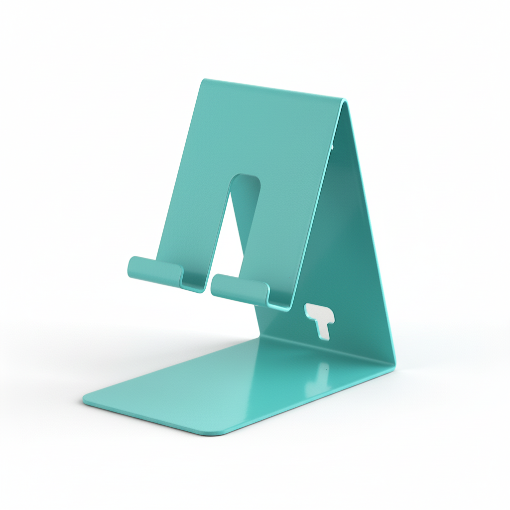 Funkcjonalny stojak na telefon wykonany z ze stali.